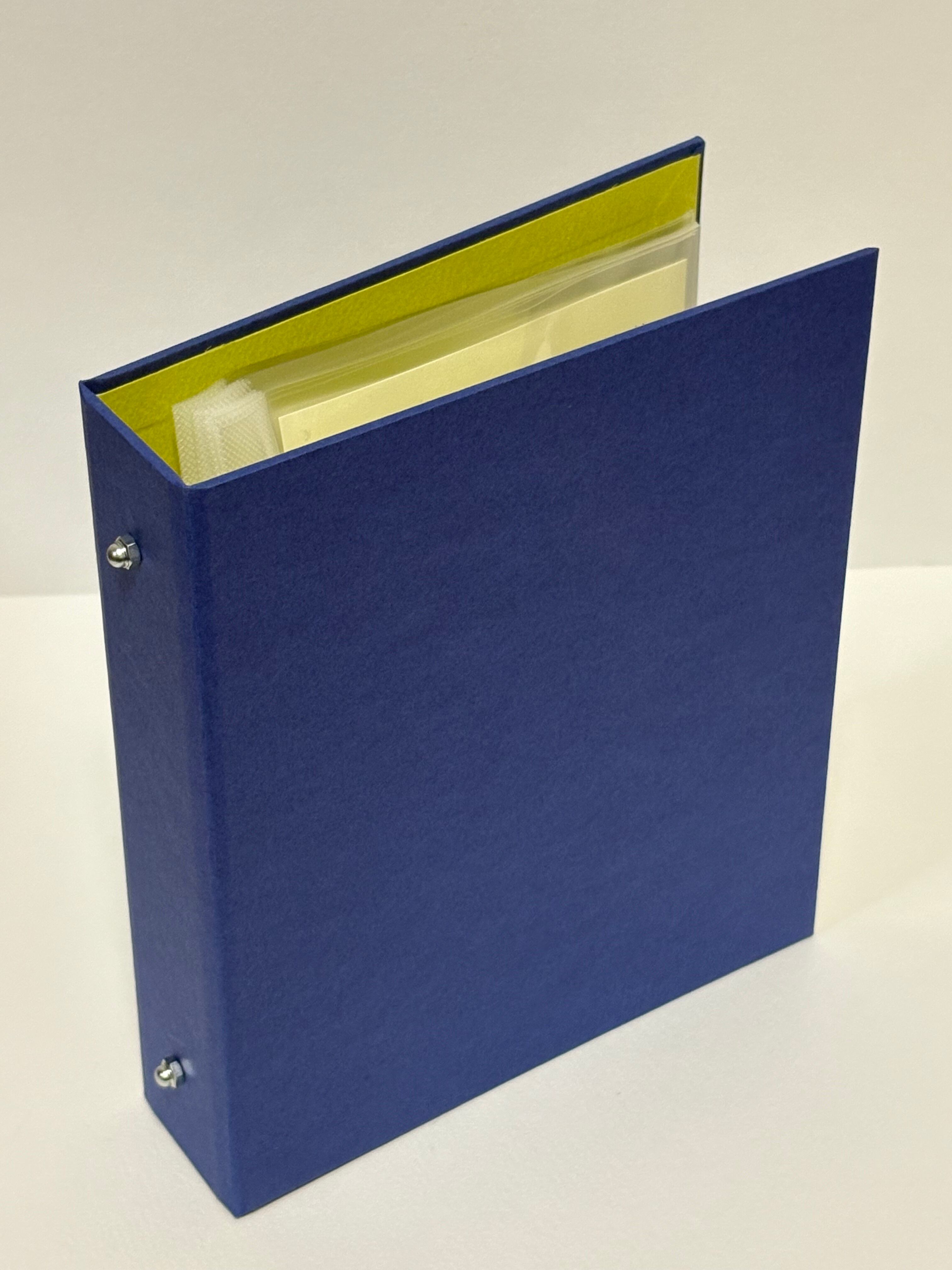 製本屋が手作りした、ポストカード専用サイズの2穴バインダー。