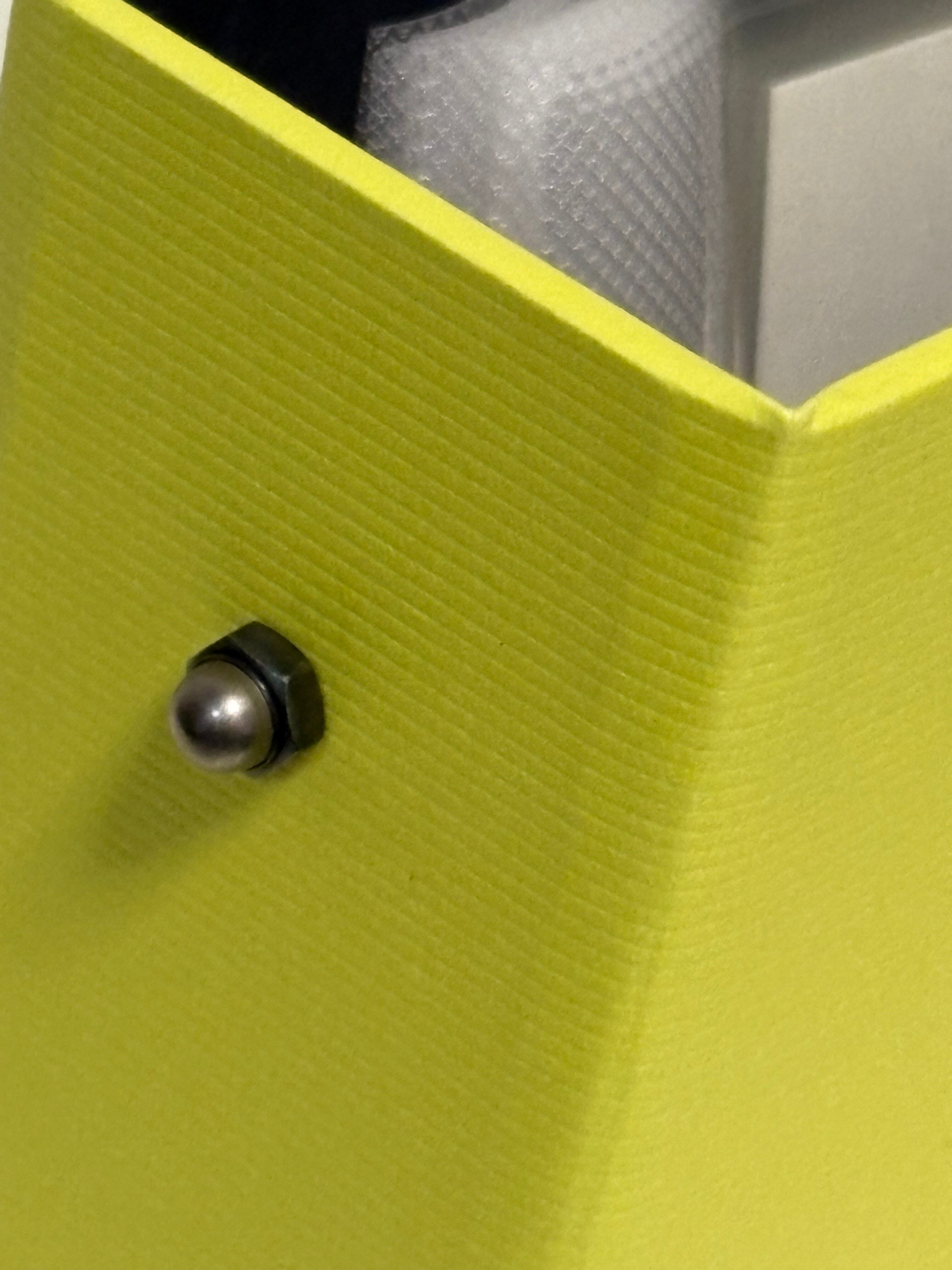 金具を留めるためのナットが背表紙にくっついたデザインとなっています。