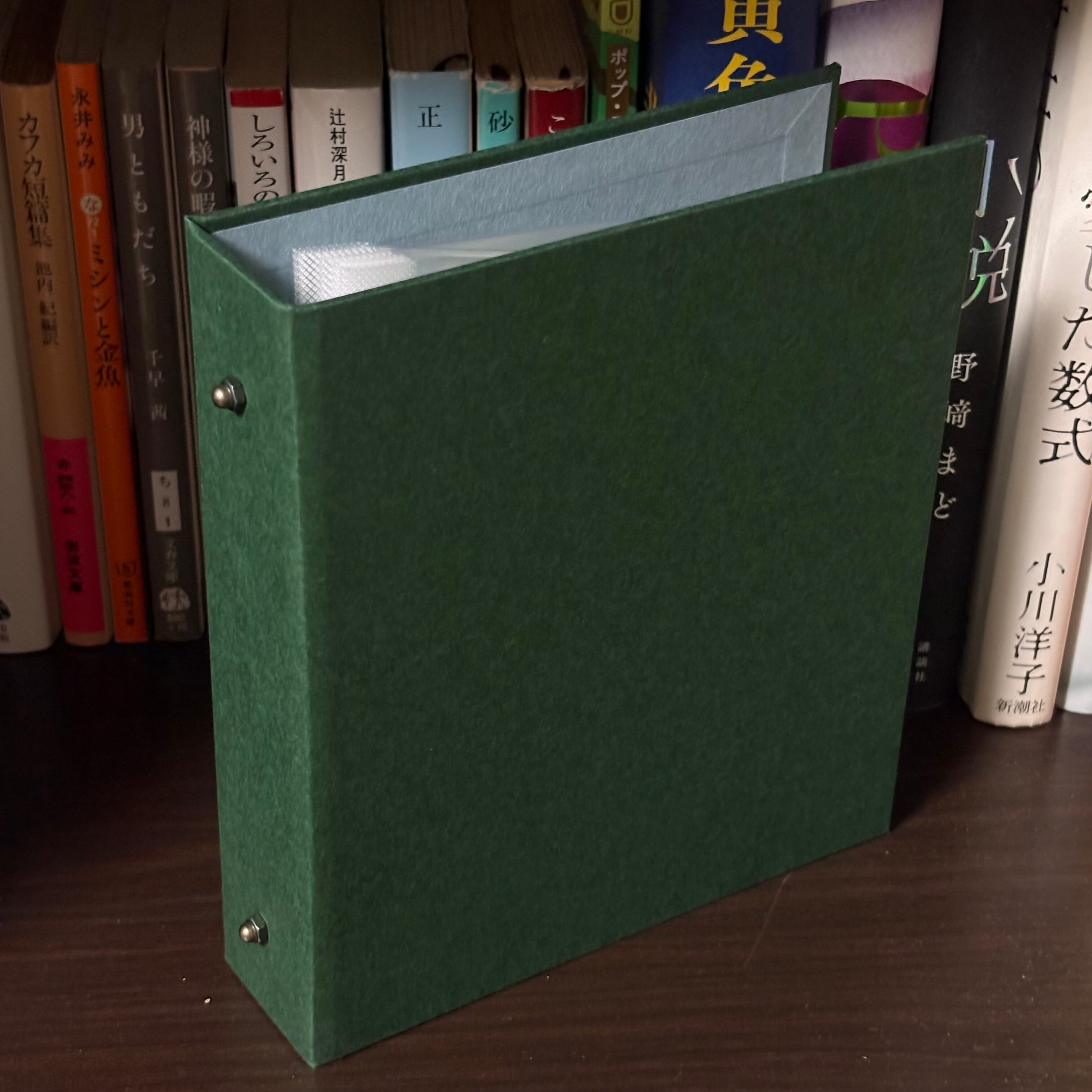 製本屋のポストカードバインダー【ビオトープ(フォレストグリーン)×OKカイゼル(はなだ)】