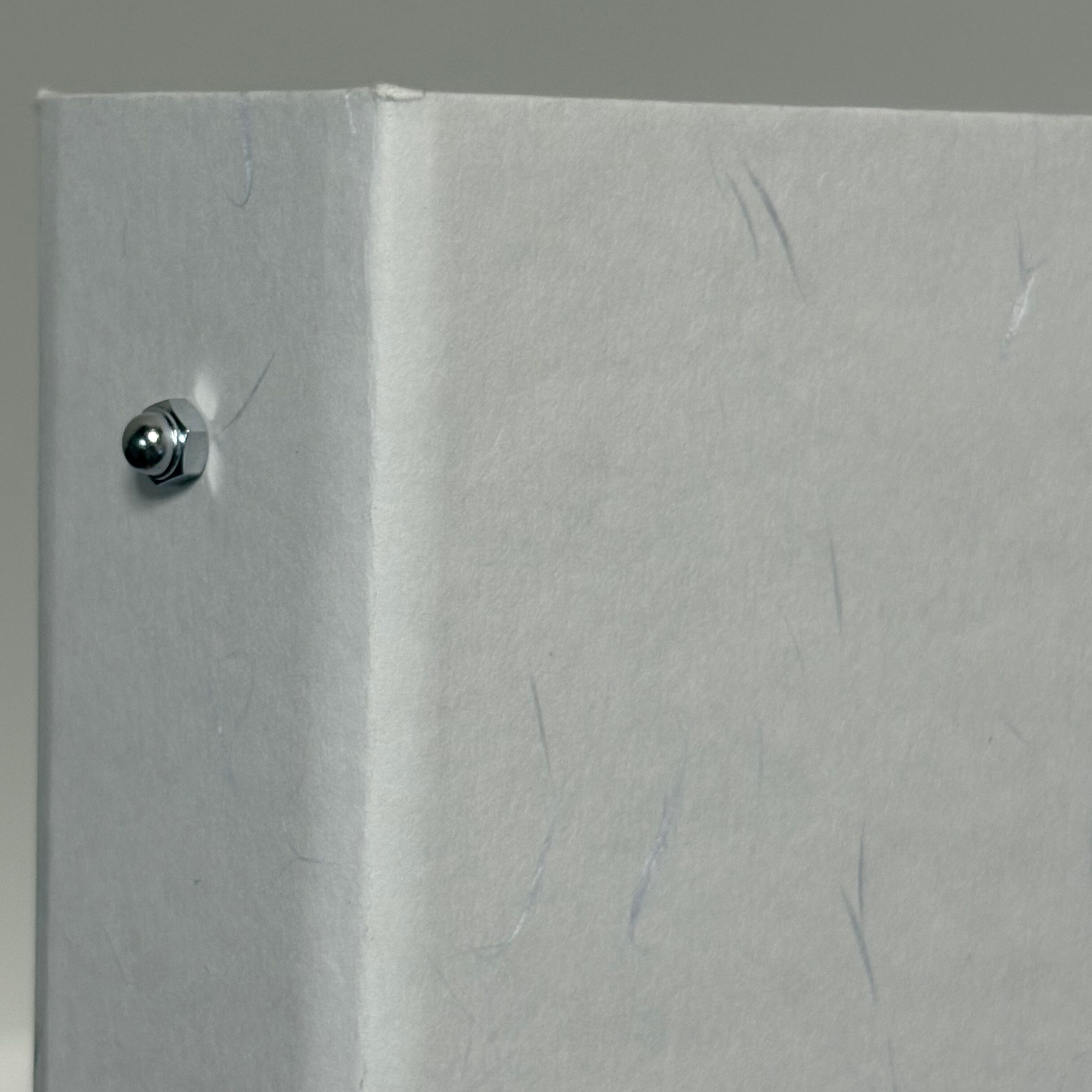 金具を留めるためのナットが背表紙にくっついたデザインとなっています。