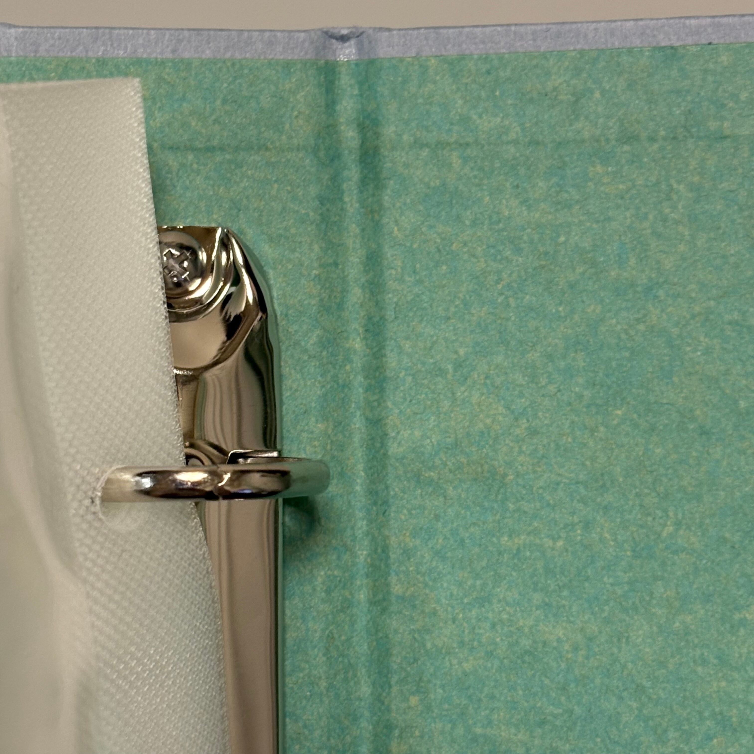 金具を留めるためのナットが背表紙にくっついたデザインとなっています。