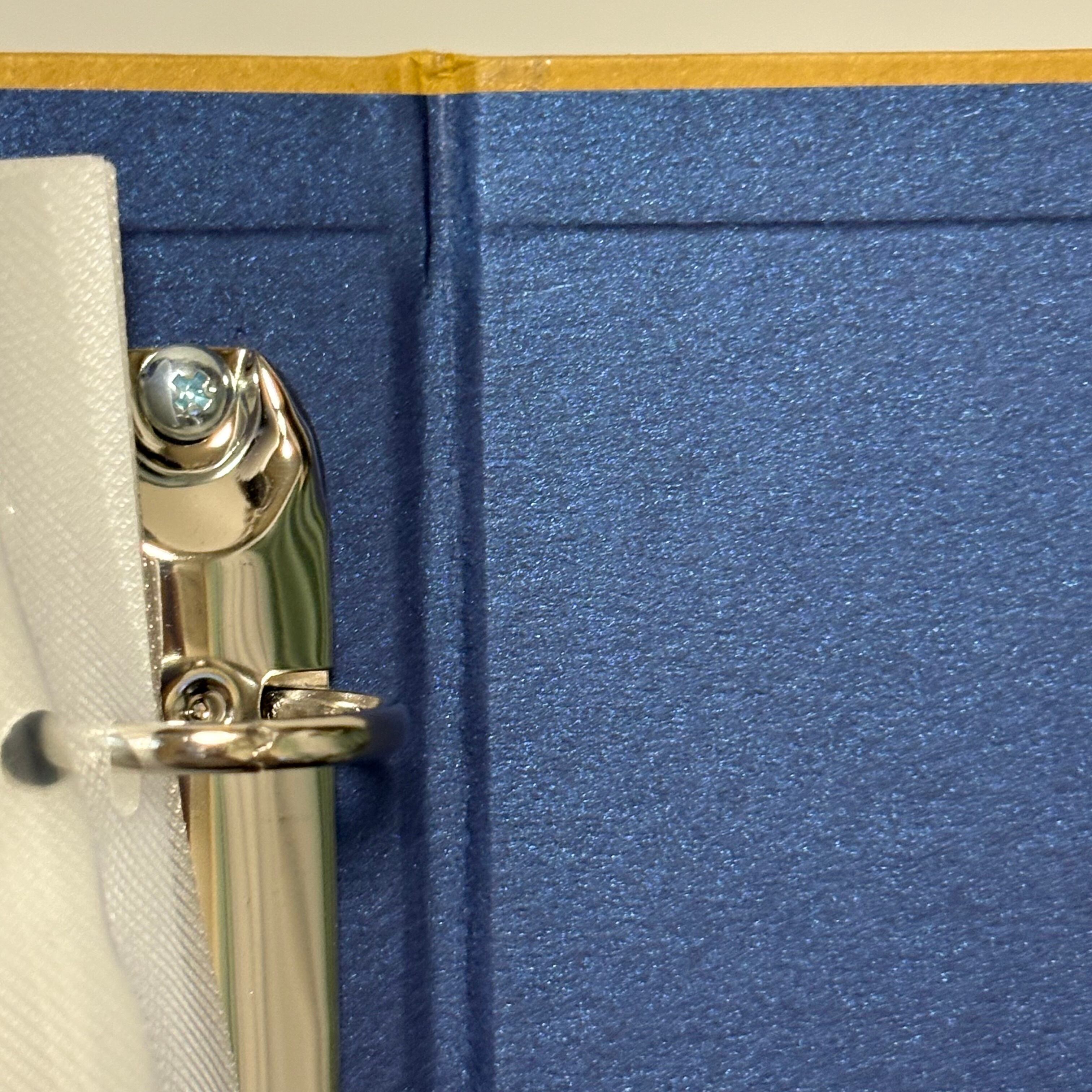 金具を留めるためのナットが背表紙にくっついたデザインとなっています。
