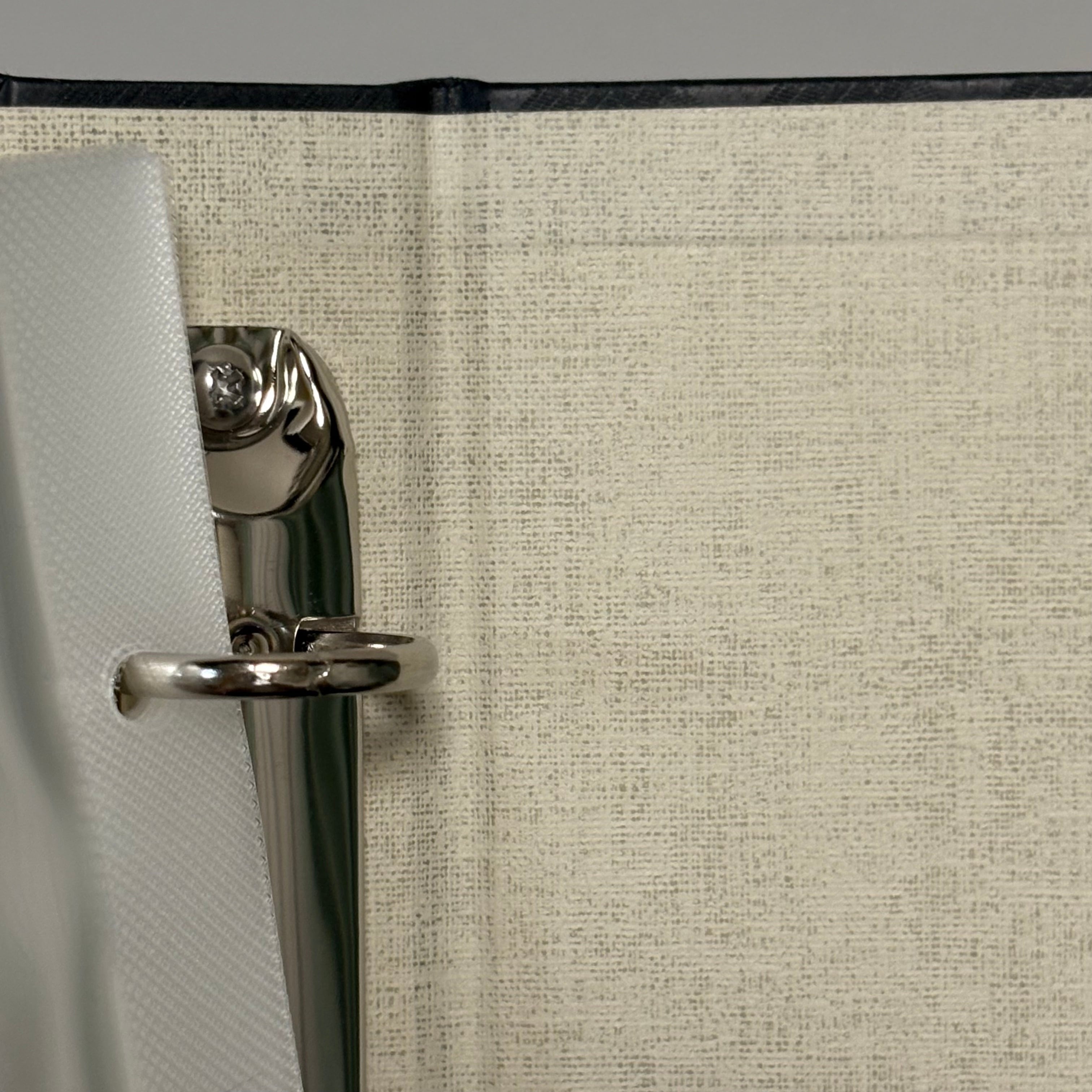 金具を留めるためのナットが背表紙にくっついたデザインとなっています。
