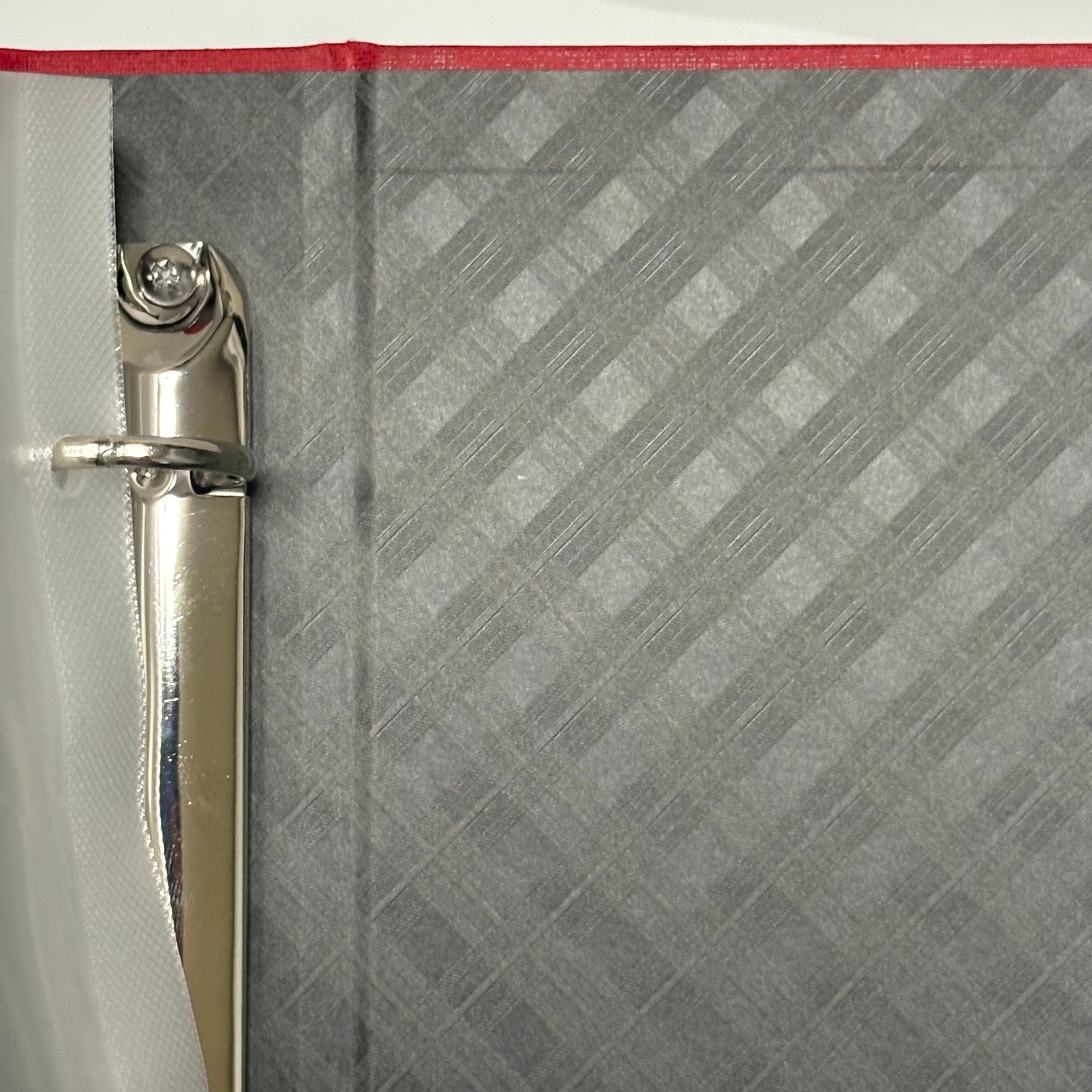 金具を留めるためのナットが背表紙にくっついたデザインとなっています。