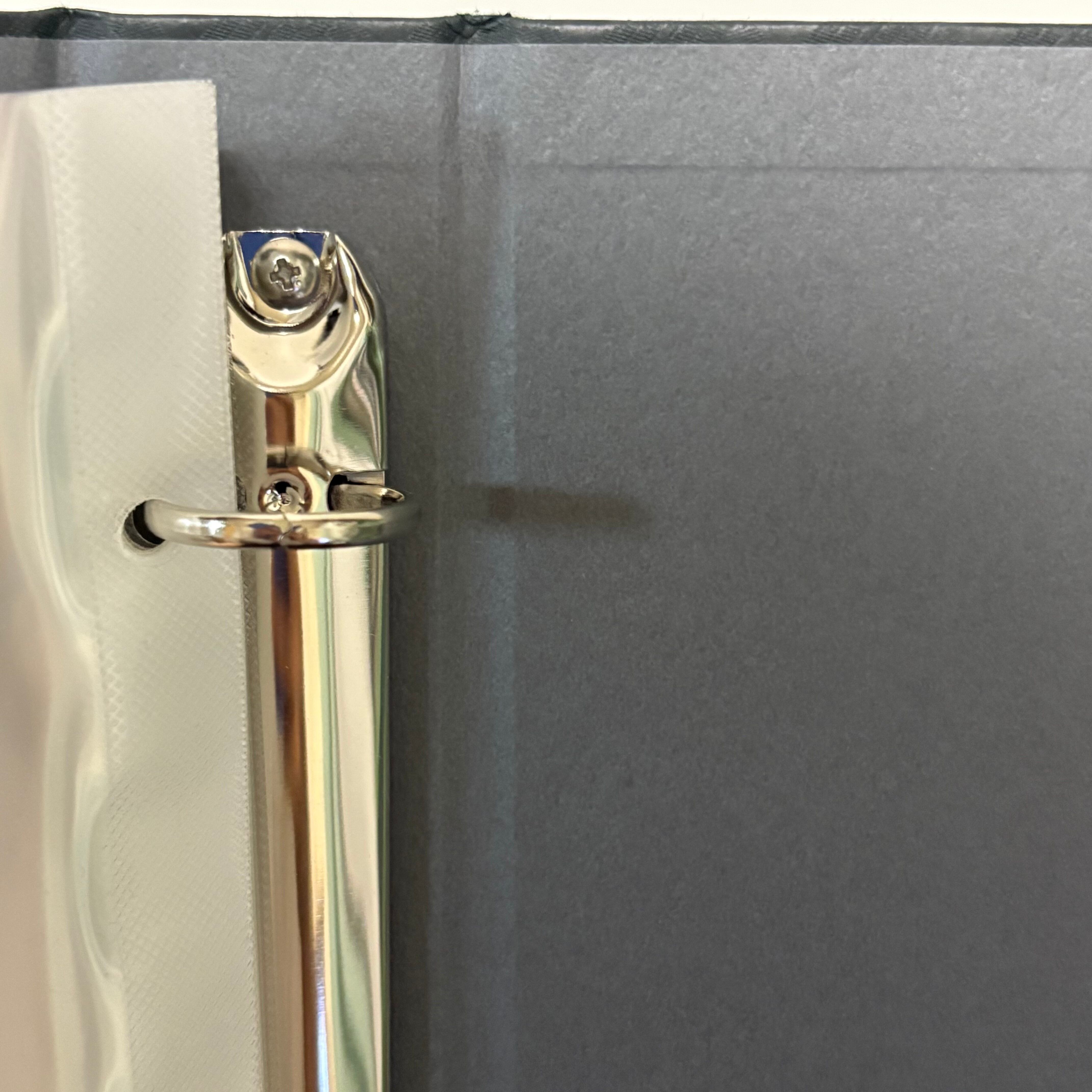 金具を留めるためのナットが背表紙にくっついたデザインとなっています。
