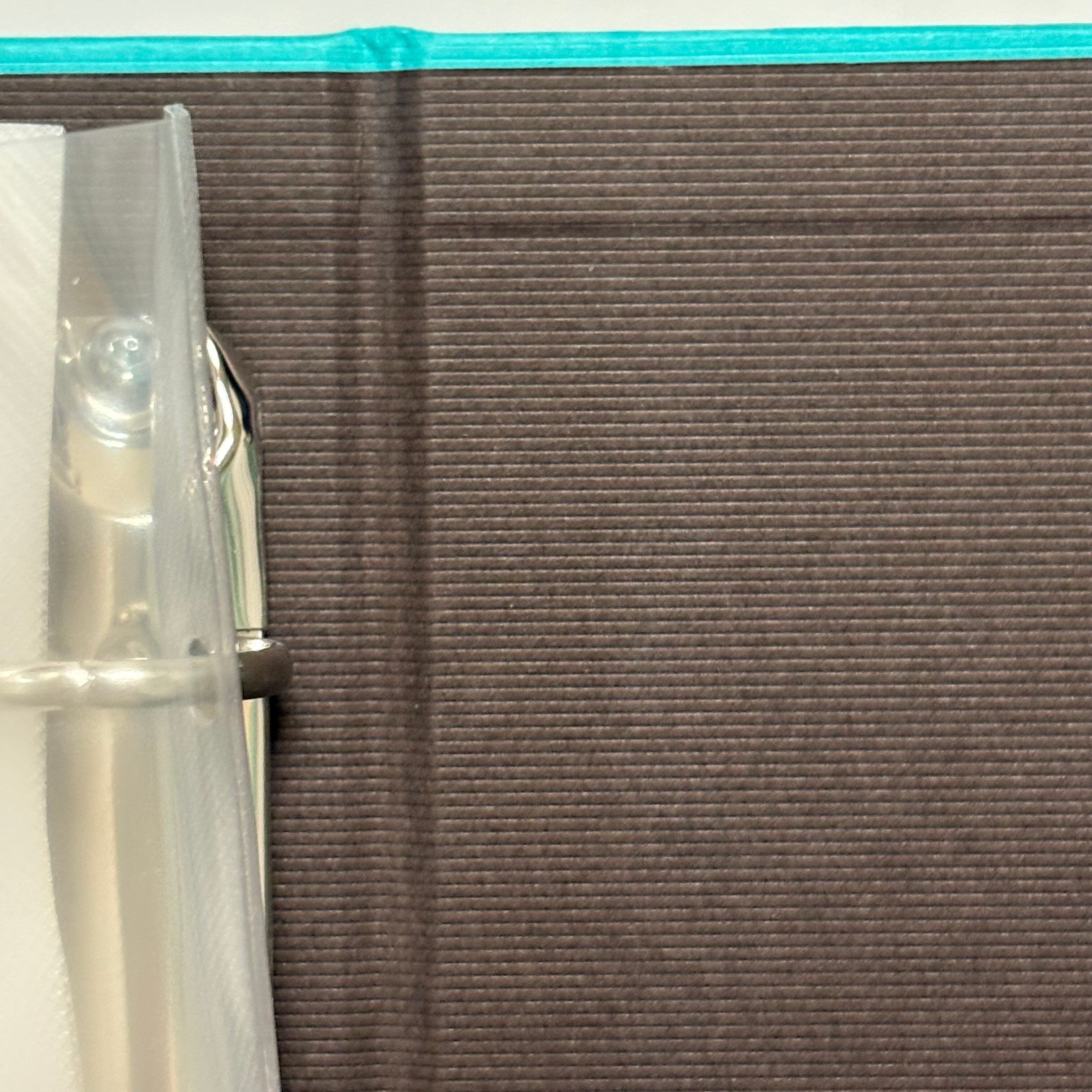金具を留めるためのナットが背表紙にくっついたデザインとなっています。
