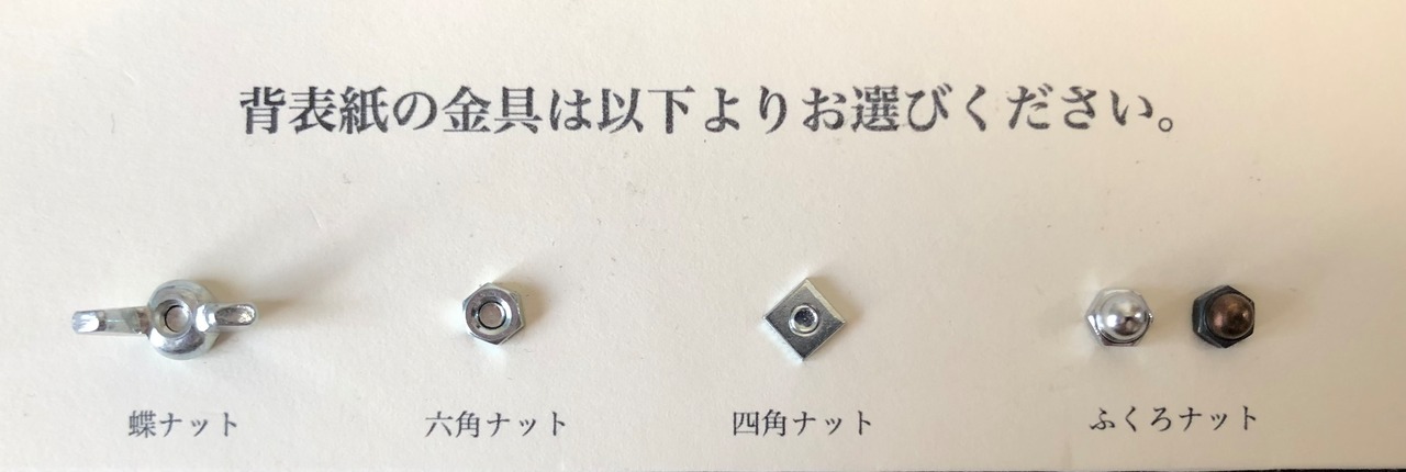 金具を留めるためのナットが背表紙にくっついたデザインとなっています。