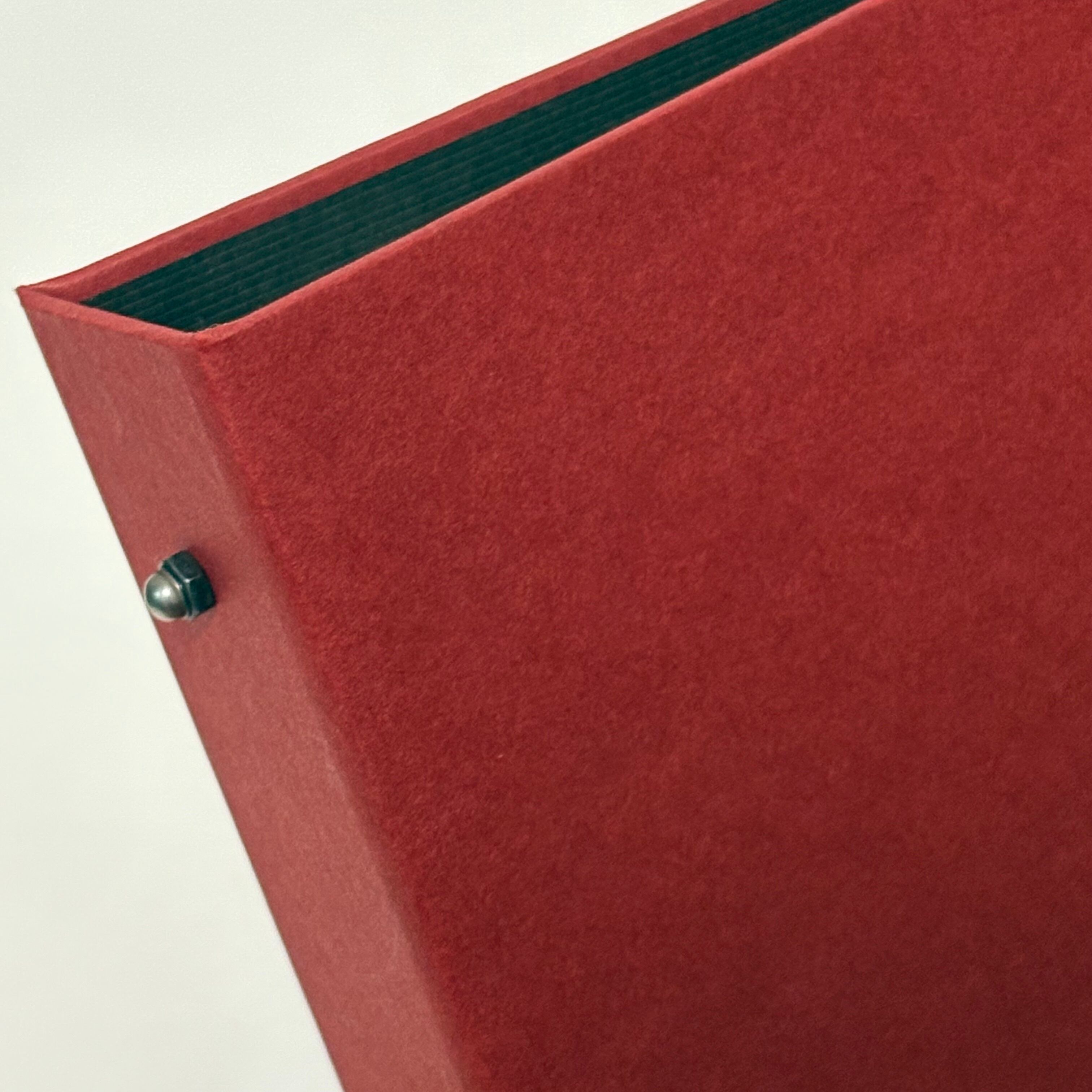 製本屋のポストカードバインダー【ビオトープ(ベリーレッド)×NTストライプ(極・焦茶)】