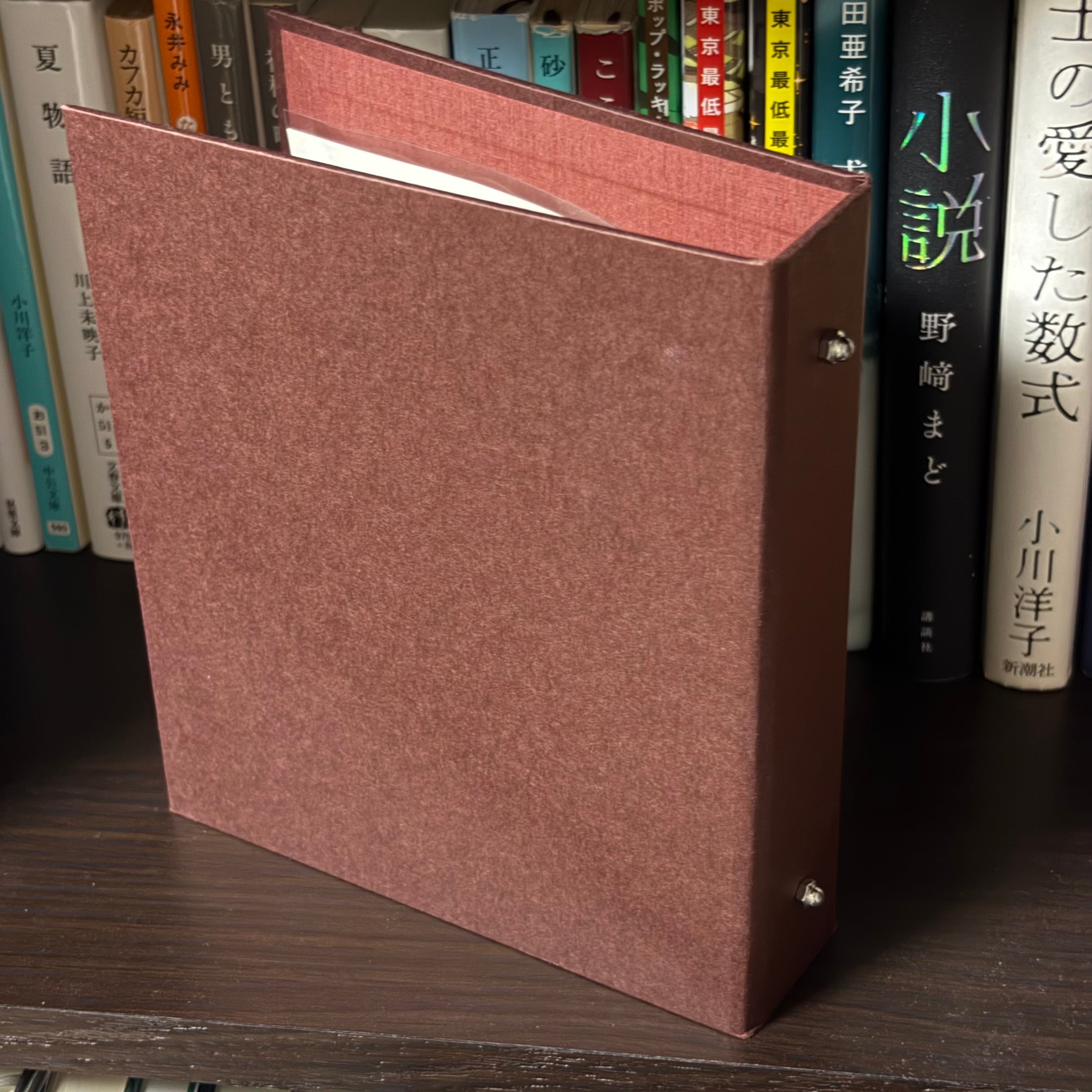 製本屋が手作りした、ポストカード専用サイズの2穴バインダー。