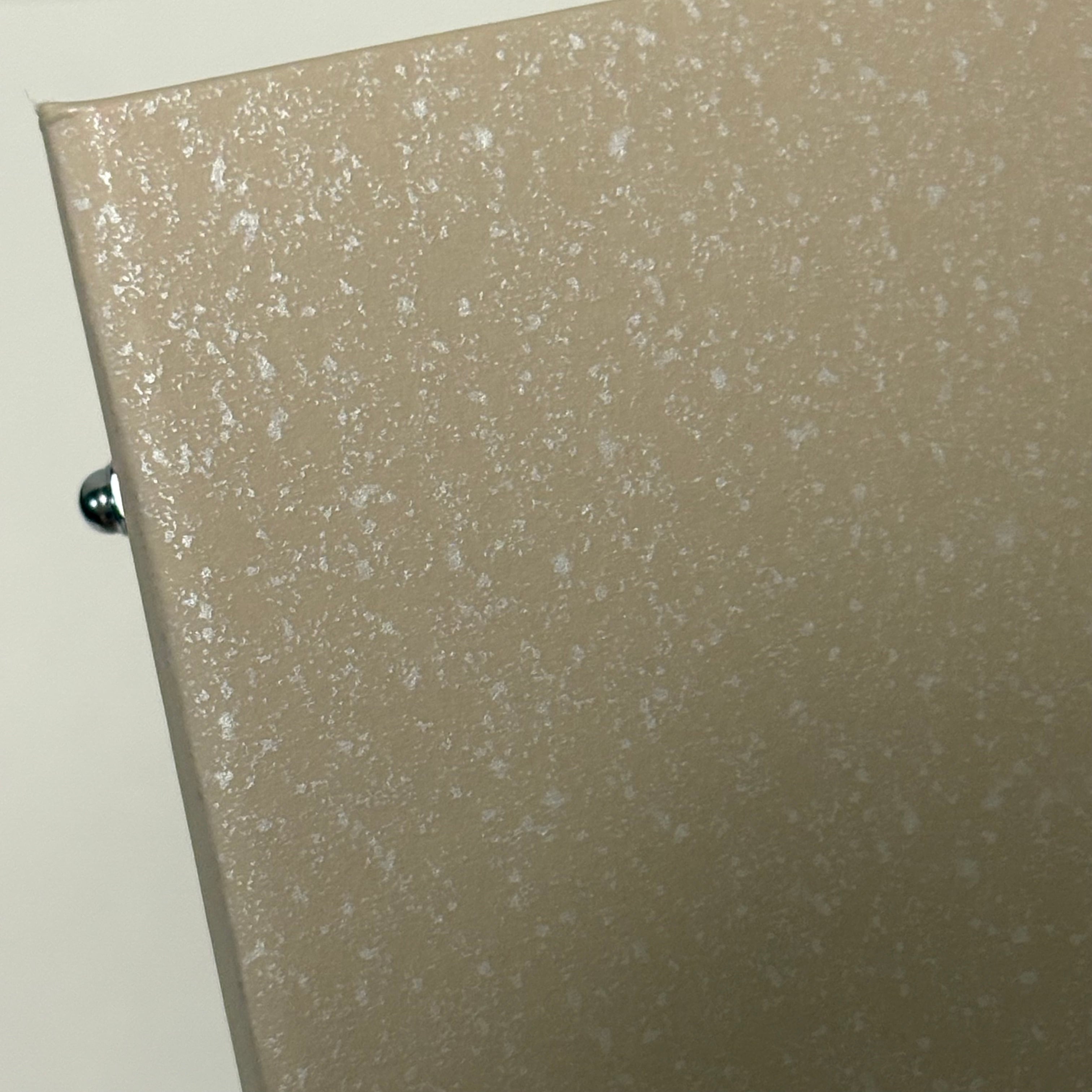 金具を留めるためのナットが背表紙にくっついたデザインとなっています。