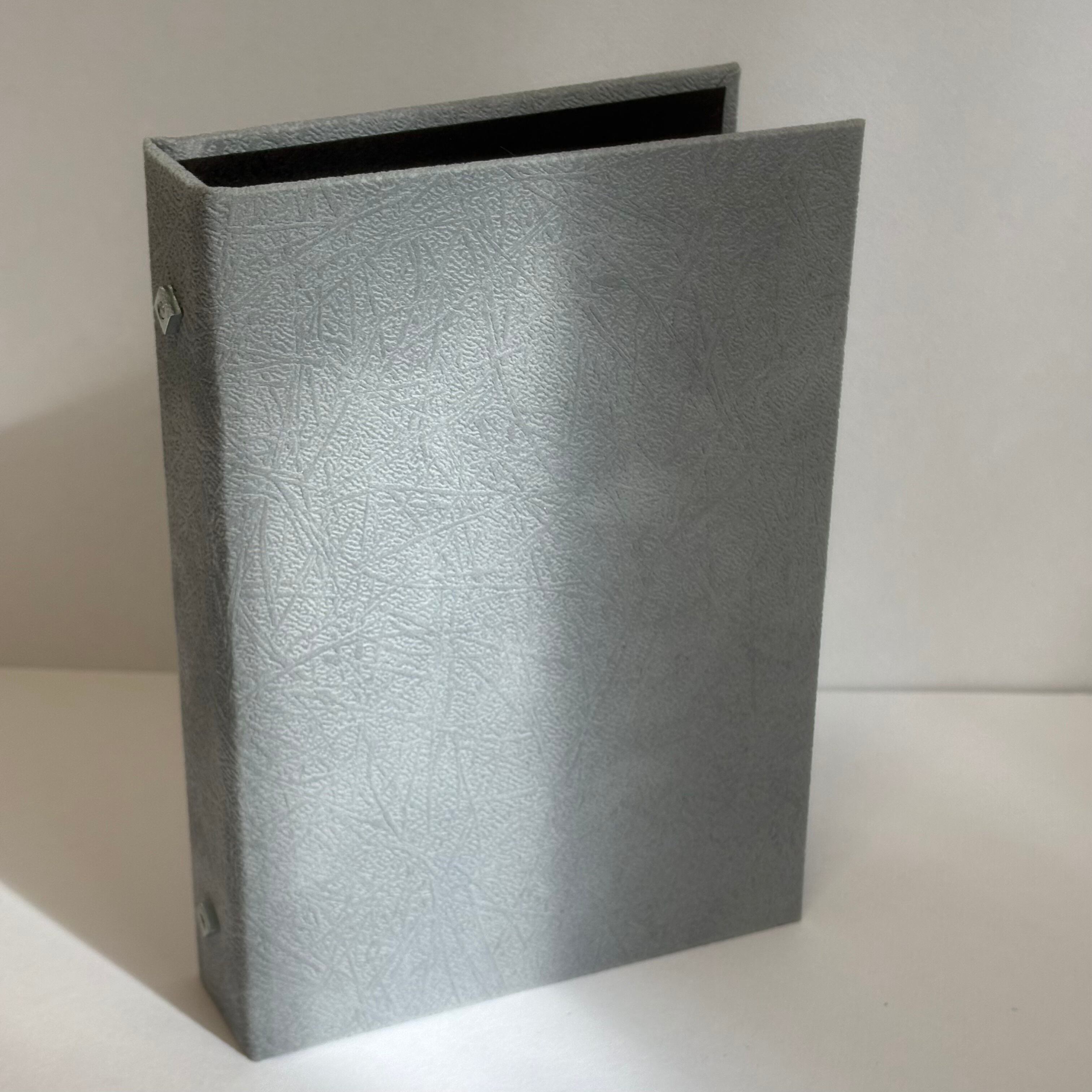 金具を留めるためのナットが背表紙にくっついたデザインとなっています。