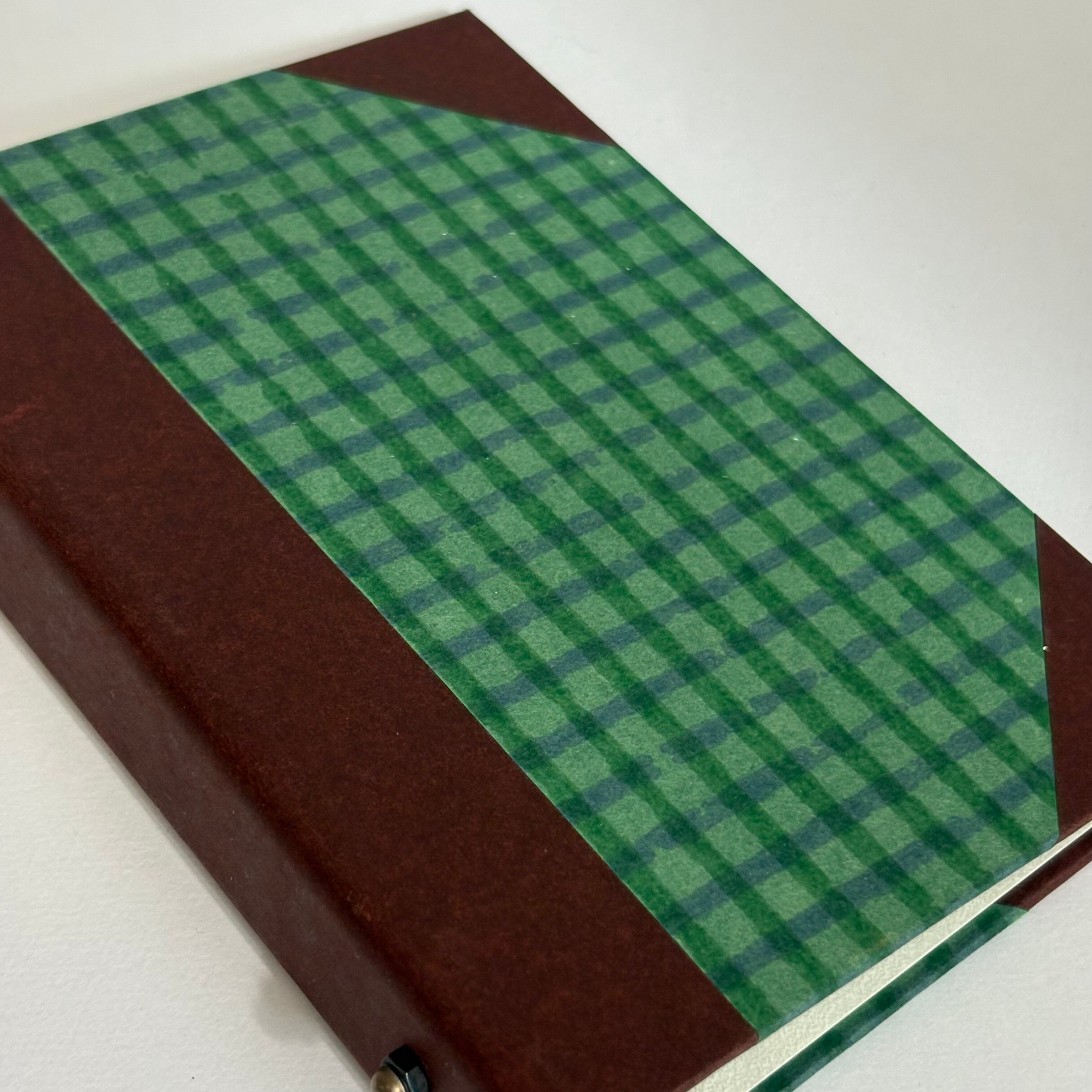 プリントペーパーは緑のブレンド紙に、手書きのような風合いで青の格子模様が入っています。
