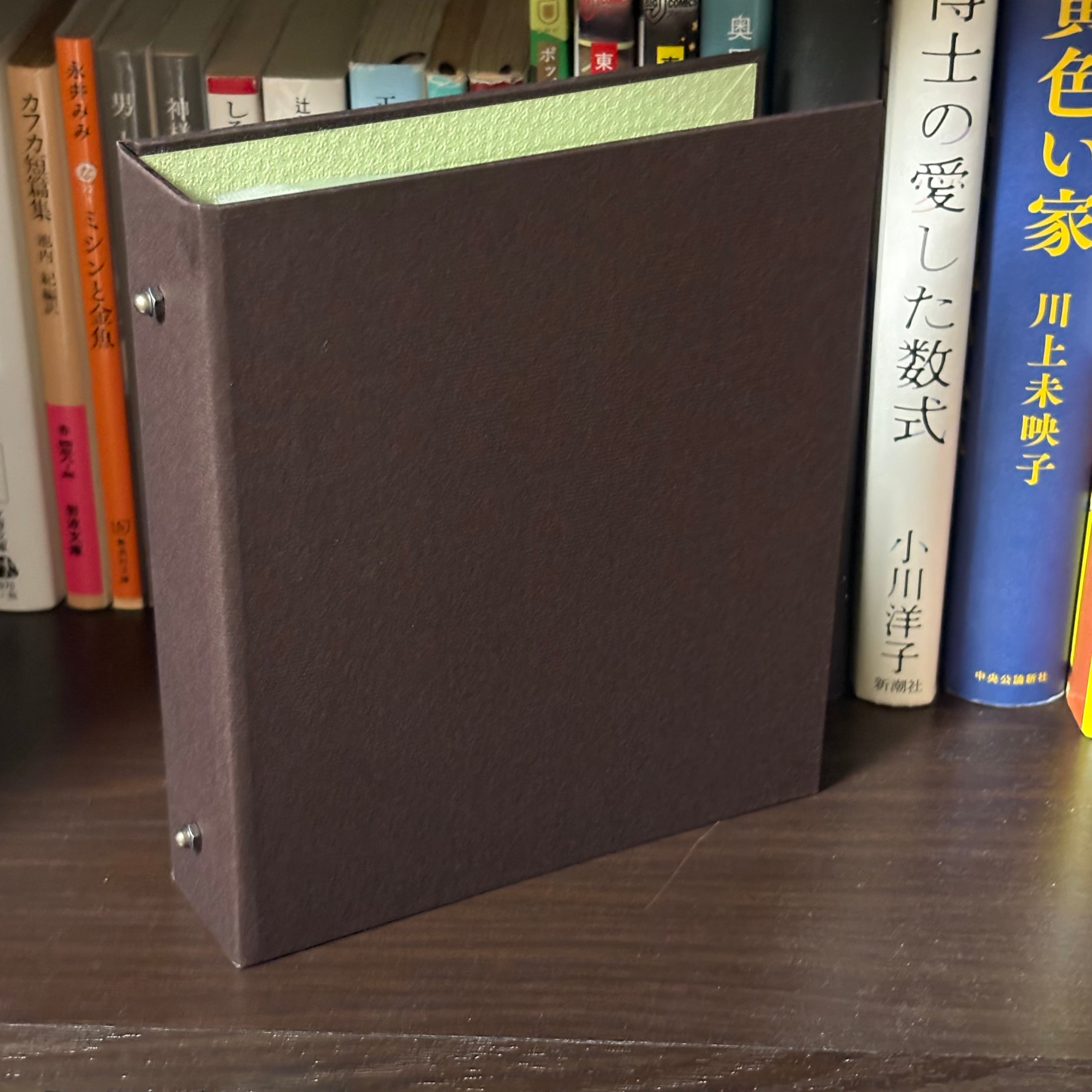 製本屋が手作りした、ポストカード専用サイズの2穴バインダー。