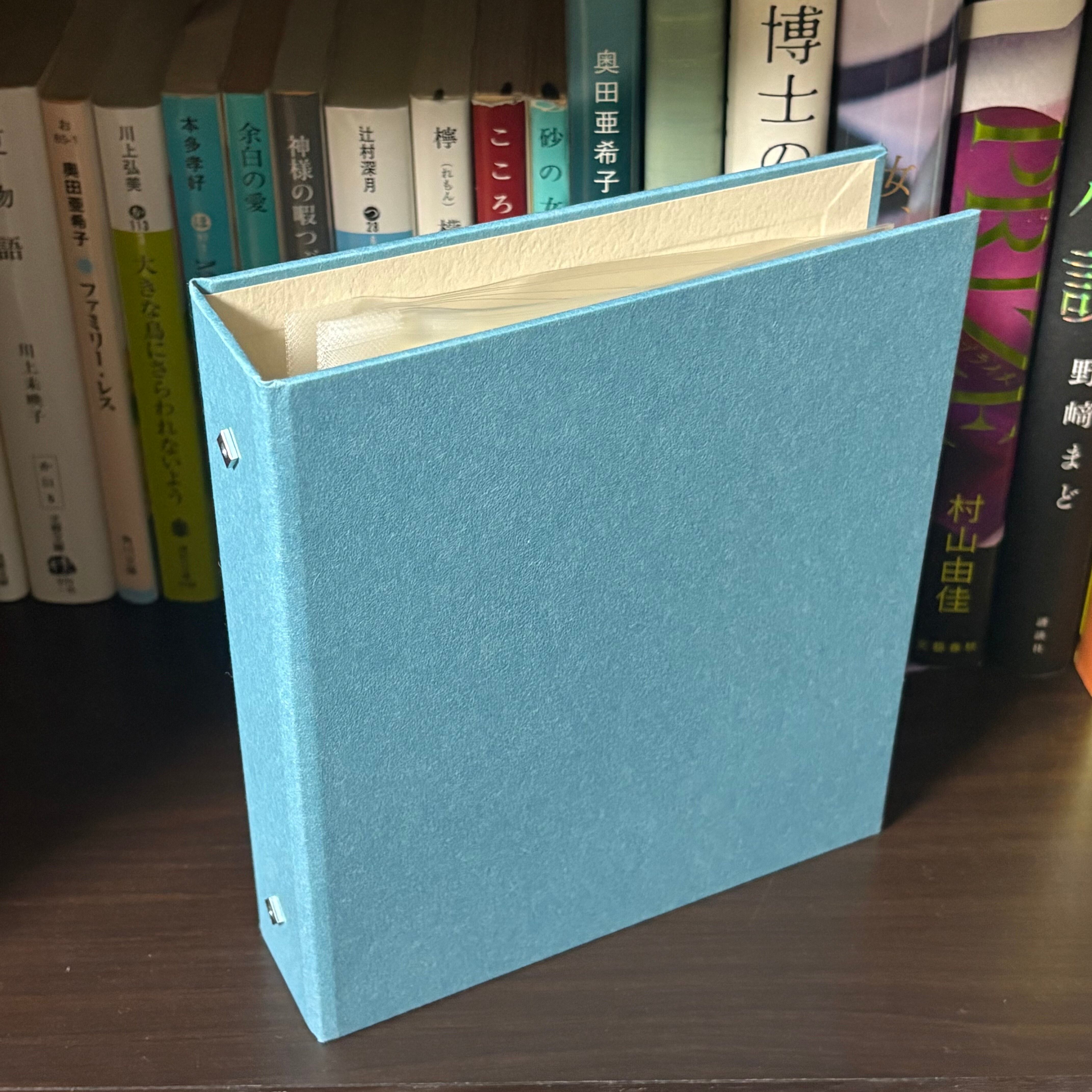 製本屋が手作りした、ポストカード専用サイズの2穴バインダー。