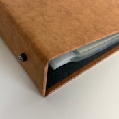 金具を留めるためのナットが背表紙にくっついたデザインとなっています。