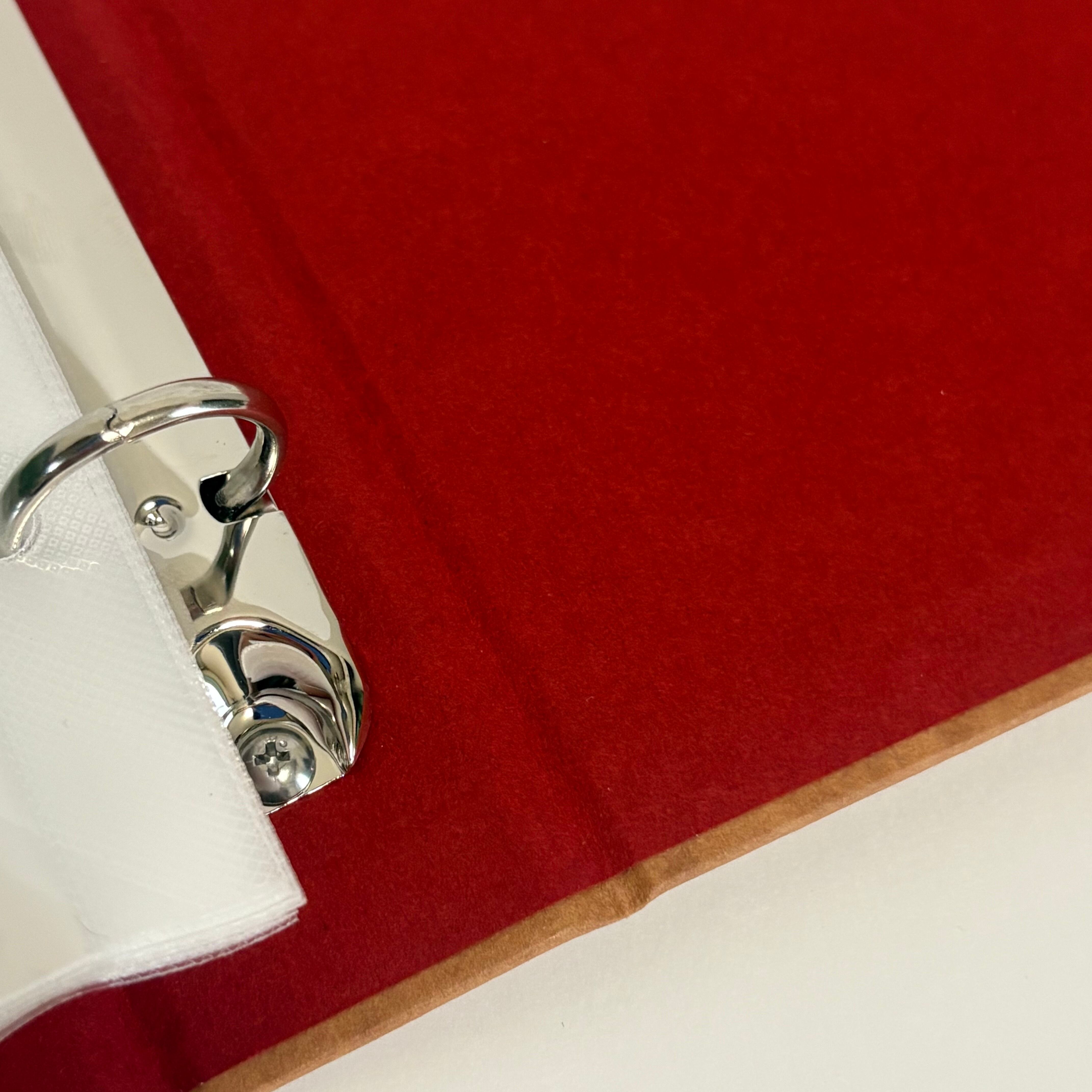 製本屋のポストカードバインダー【羊皮紙(茶)×ビオトープ(ベリーレッド)】