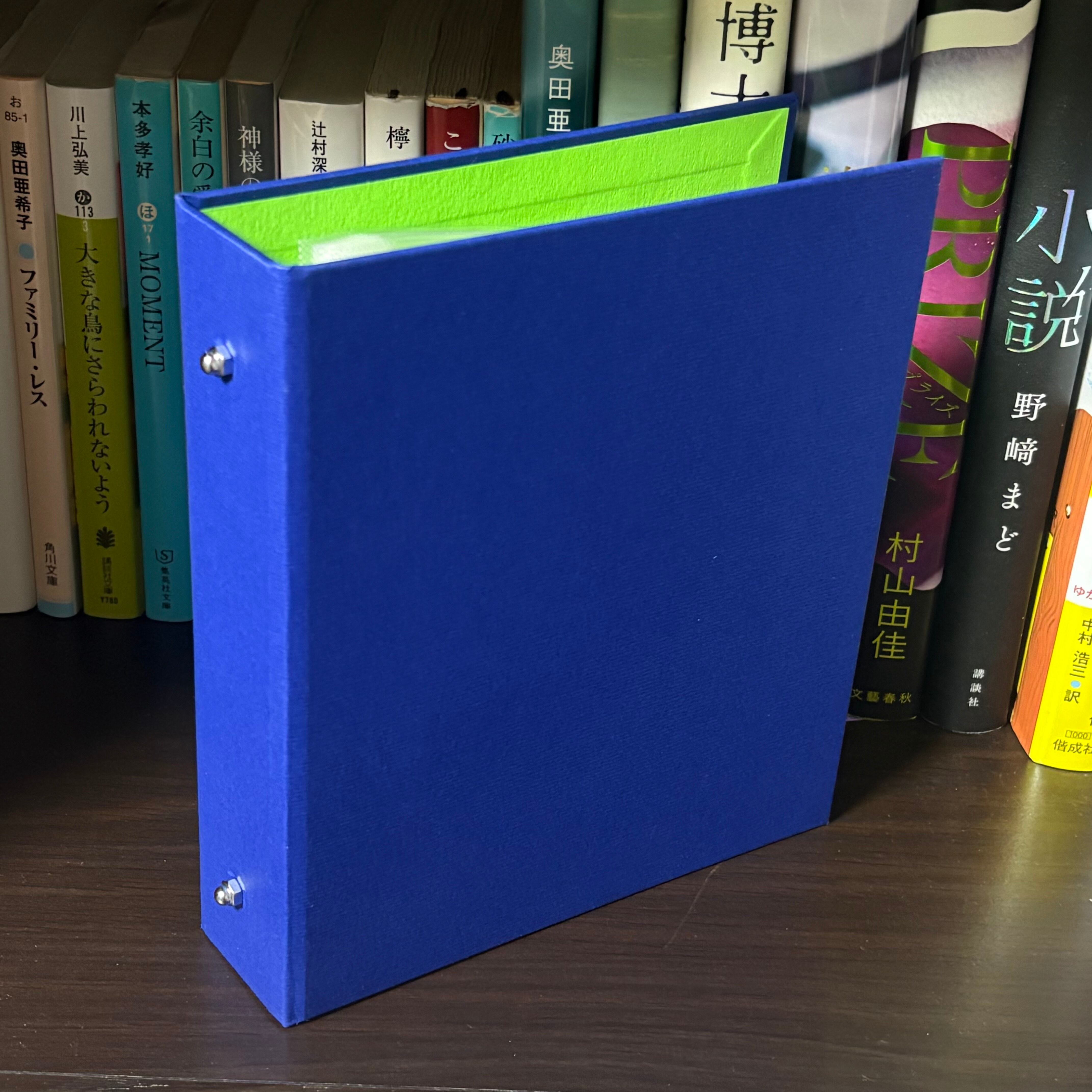 製本屋のポストカードバインダー【NTストライプ(ロイヤルブルー)×アストロブライト(グリーン)】