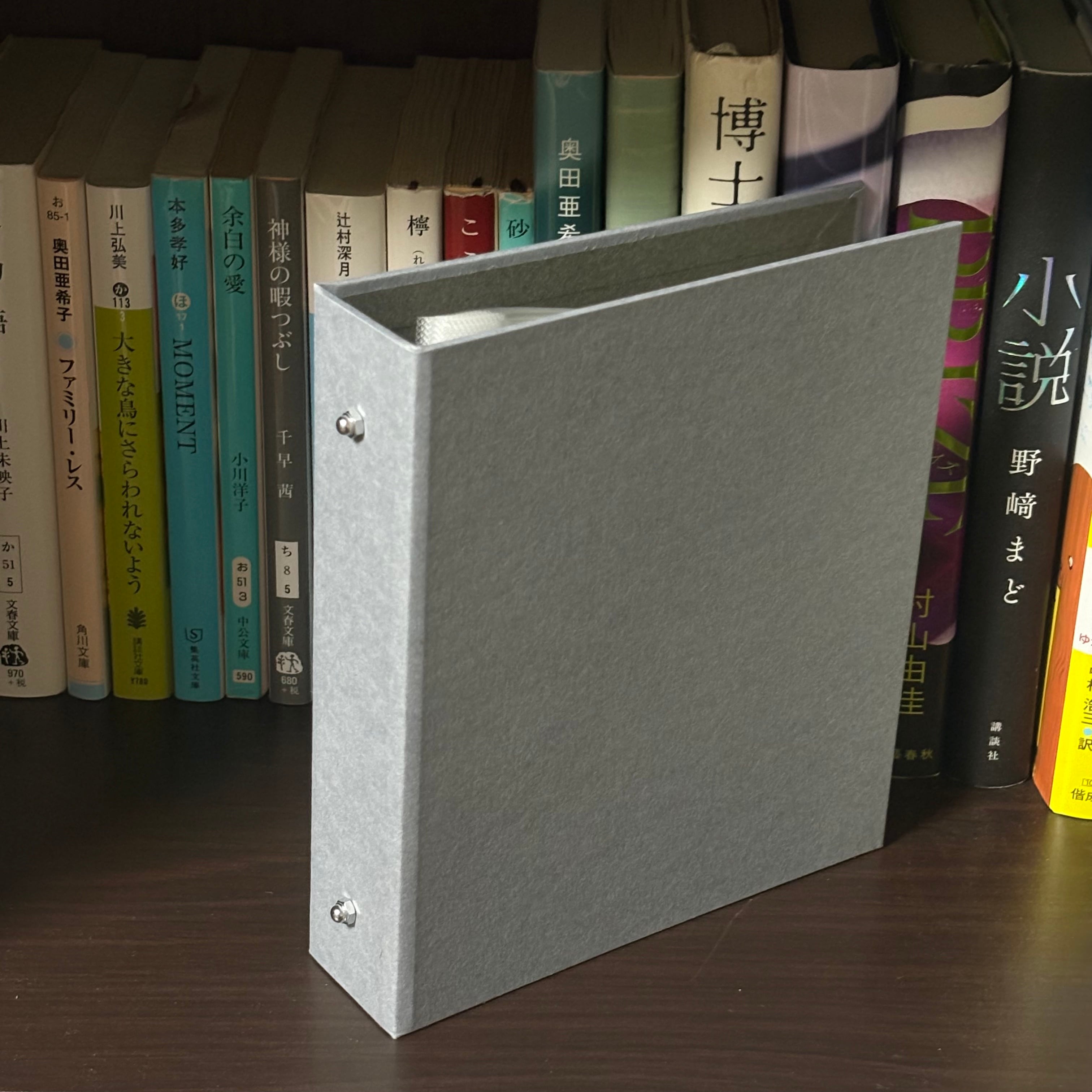 製本屋が手作りした、ポストカード専用サイズの2穴バインダー。
