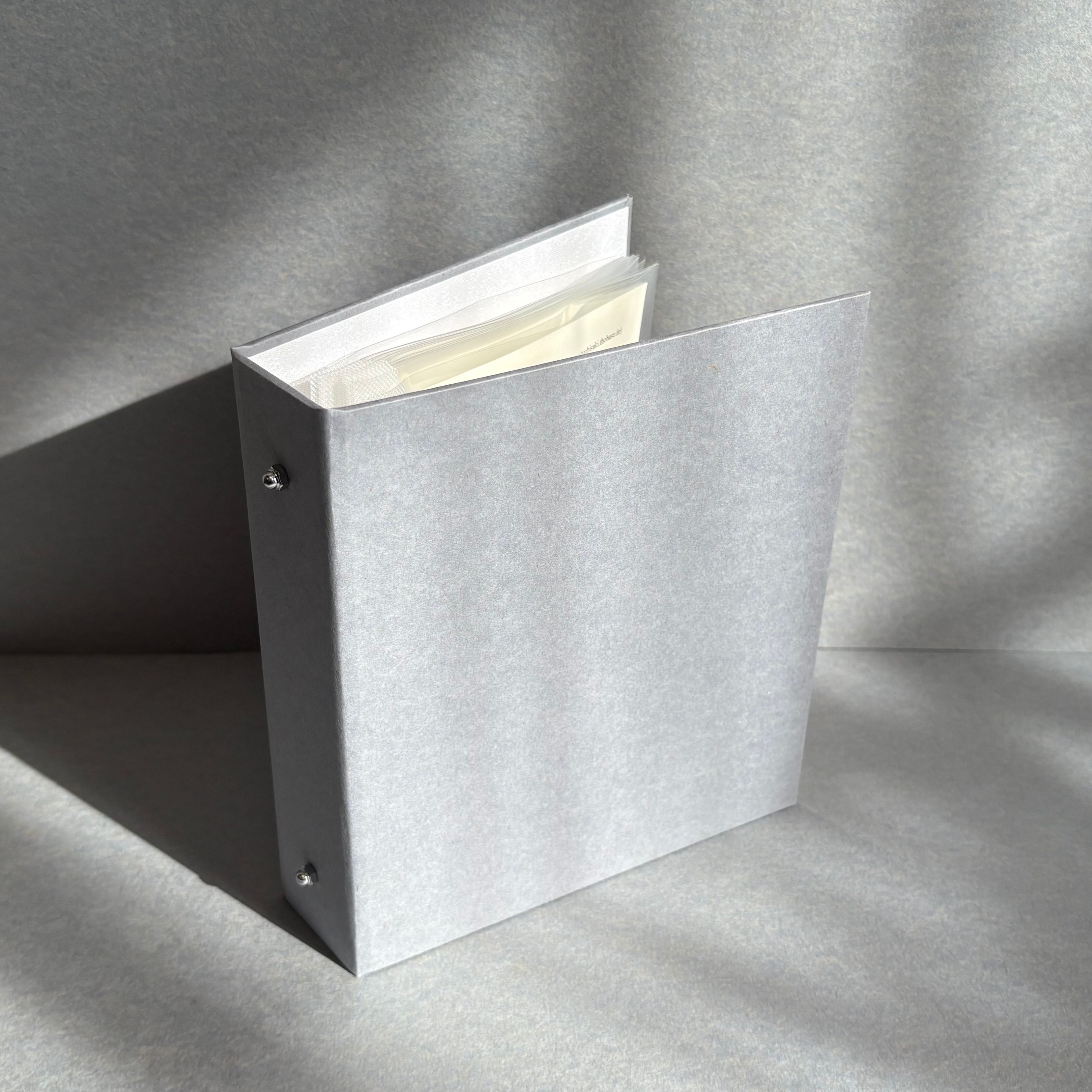 製本屋が手作りした、ポストカード専用サイズの2穴バインダー。