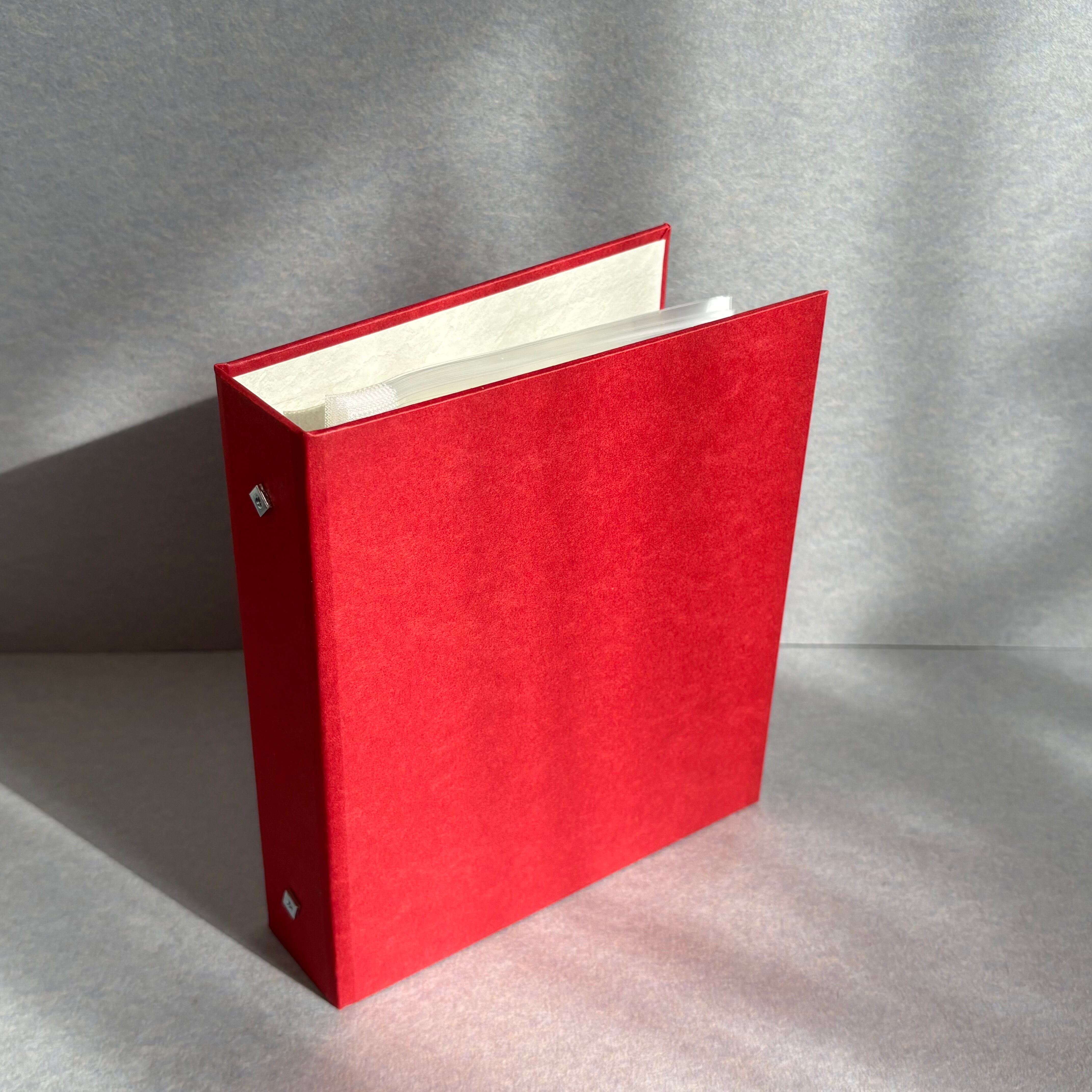 製本屋のポストカードバインダー【ビオトープ(ベリーレッド)×岩はだ(銀)】