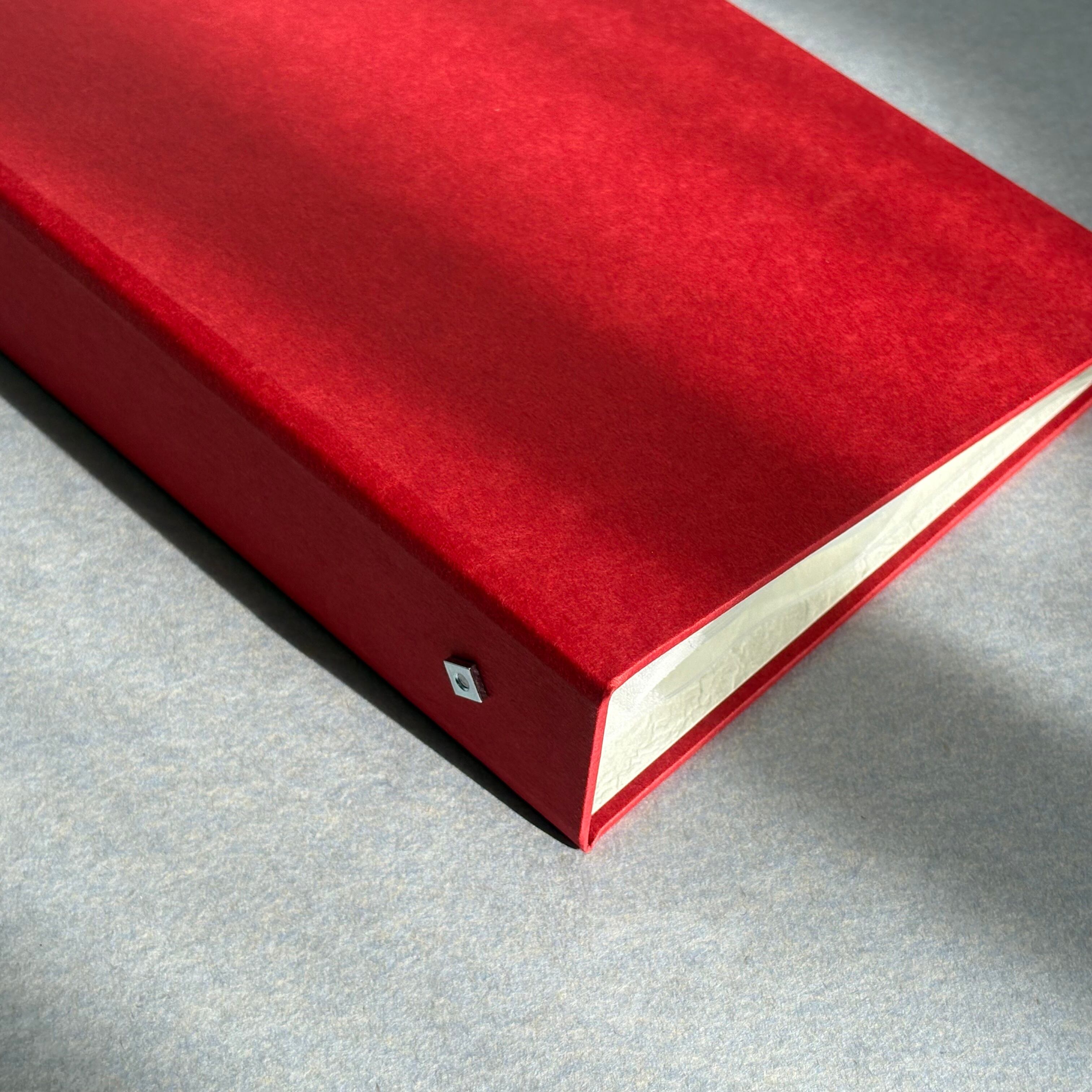 金具を留めるためのナットが背表紙にくっついたデザインとなっています。