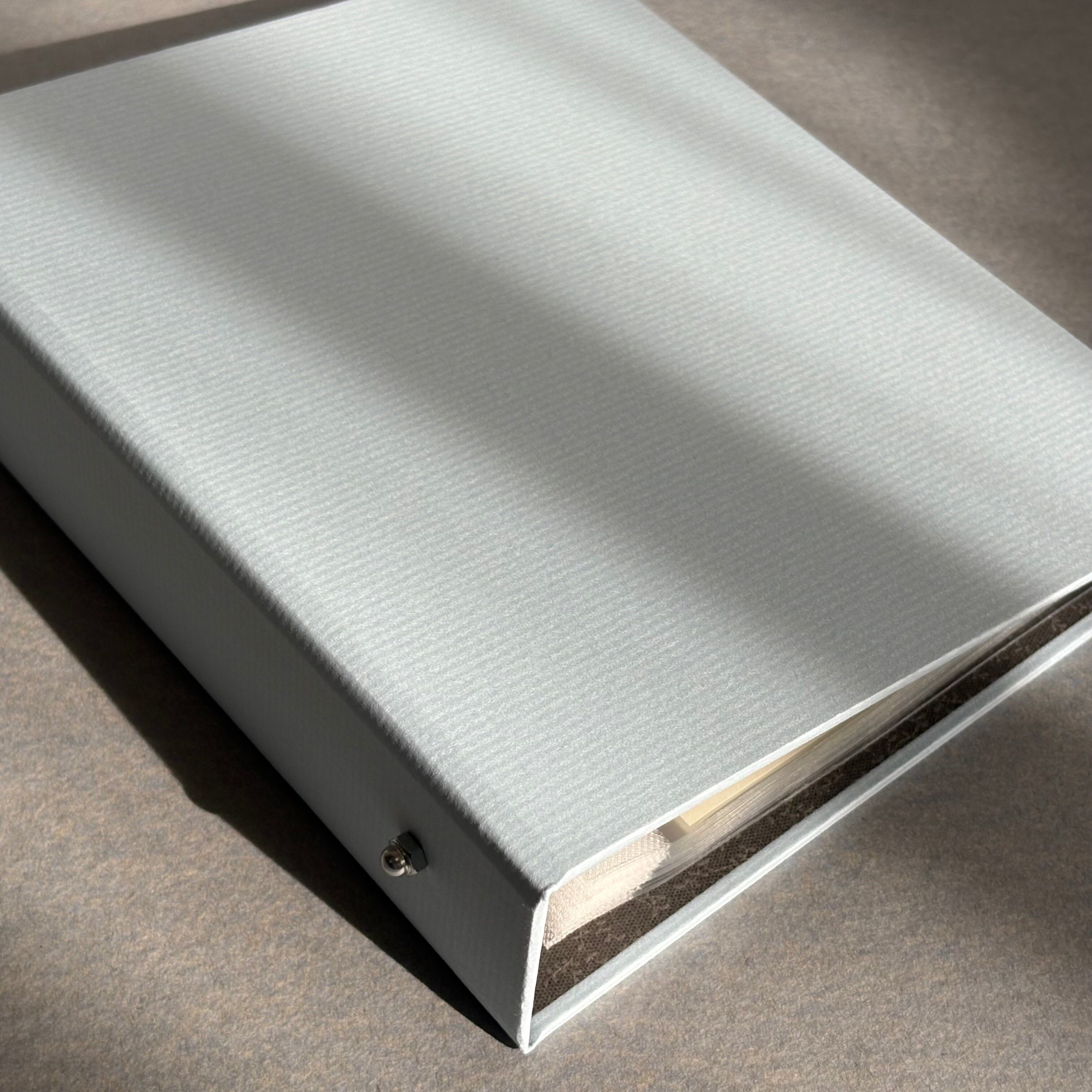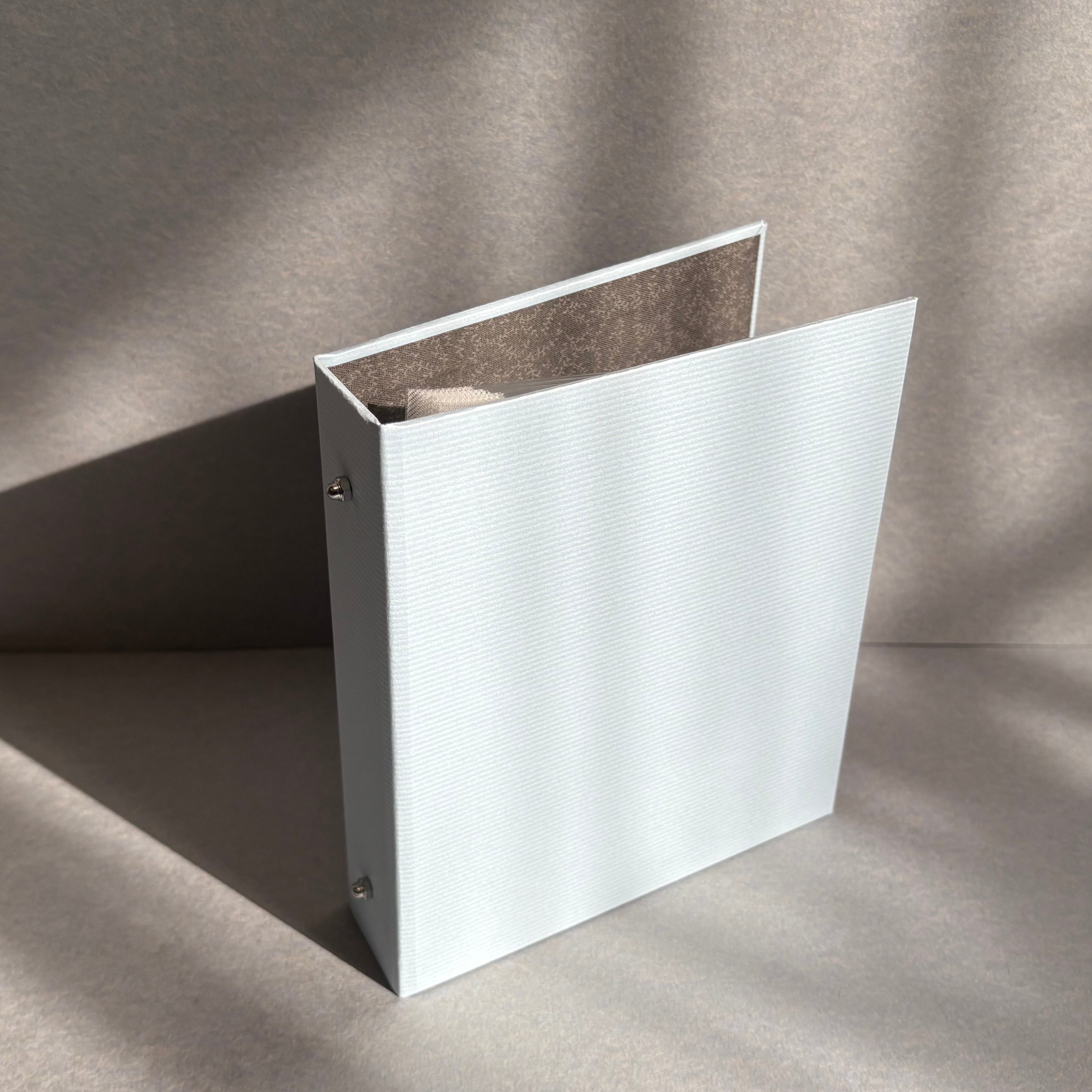 製本屋が手作りした、ポストカード専用サイズの2穴バインダー。