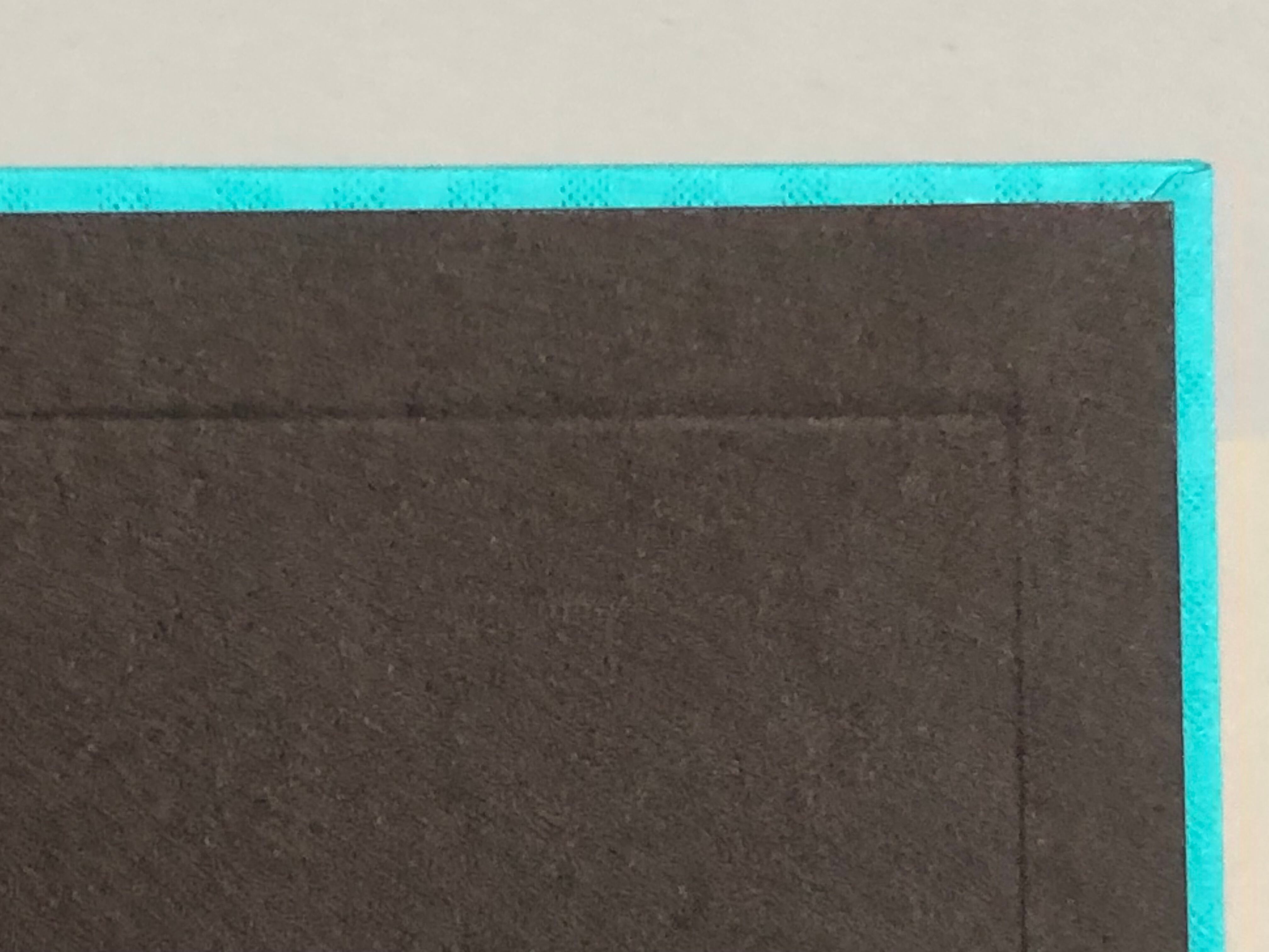 ハードカバーの本の表紙を作るのと同じ手法で、紙を貼り合わせて作っています。