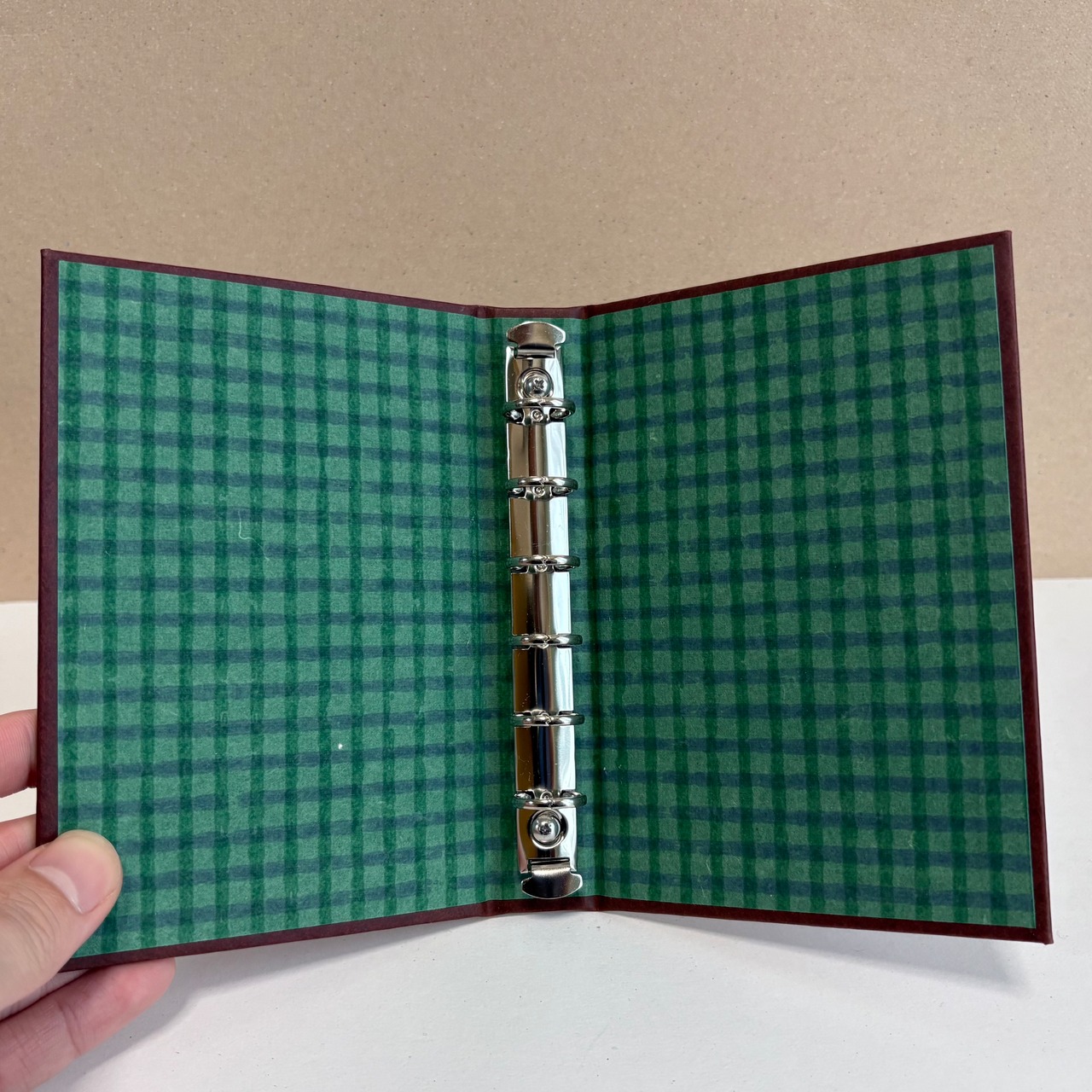 製本屋のシステム手帳バインダーミニ6サイズ【コルドバ(マルーン)×プリントペーパー(濃緑/青格子)】